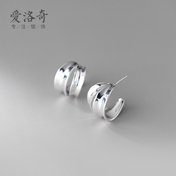 s925 sterling silver wide simple cute chic earrings