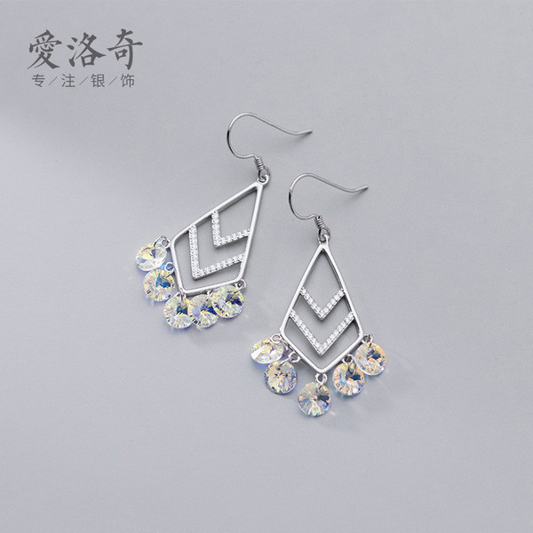 s925 sterling silver clipon piercing rhinestone hollowed simple earrings