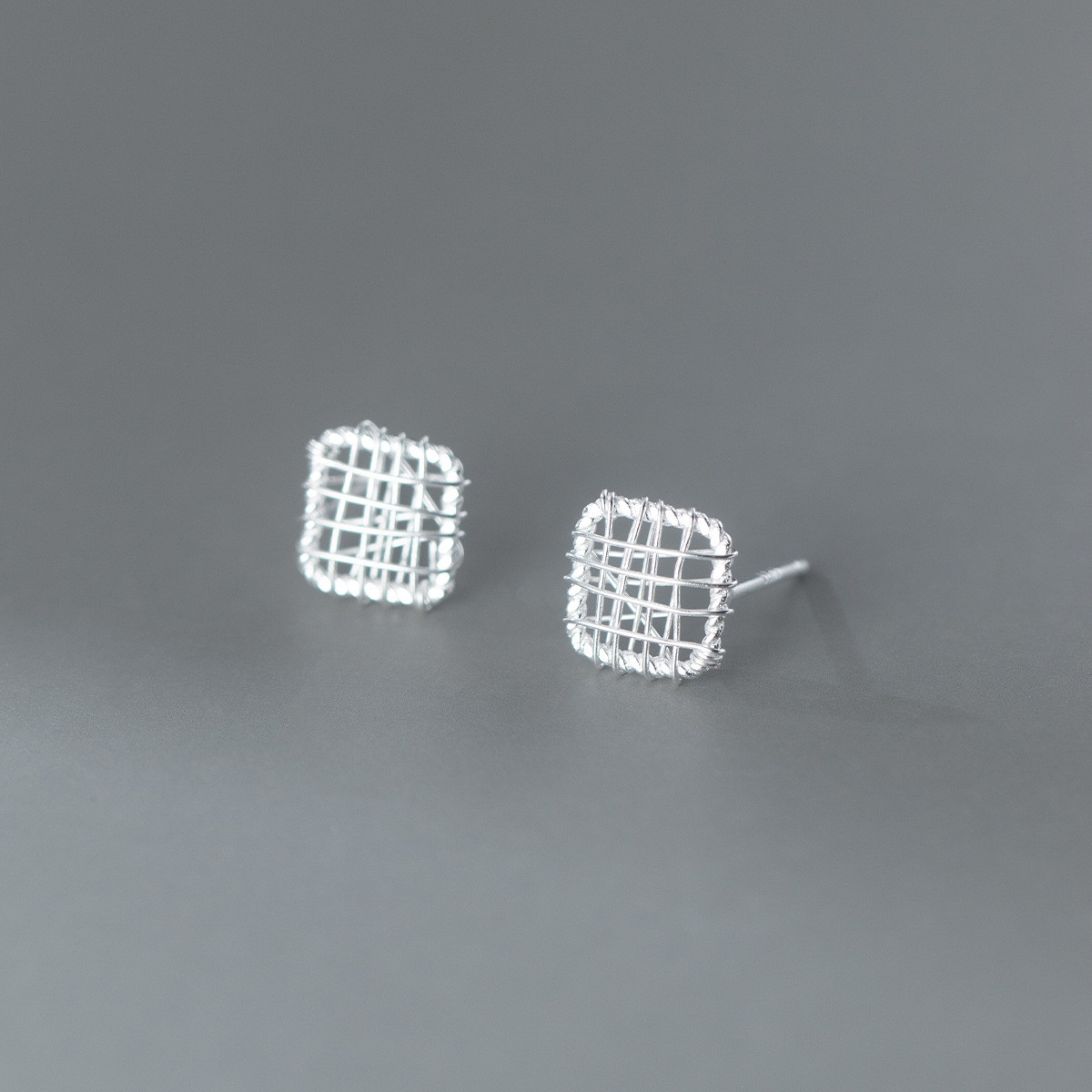 s925 sterling silver braided hollowed small design earrings