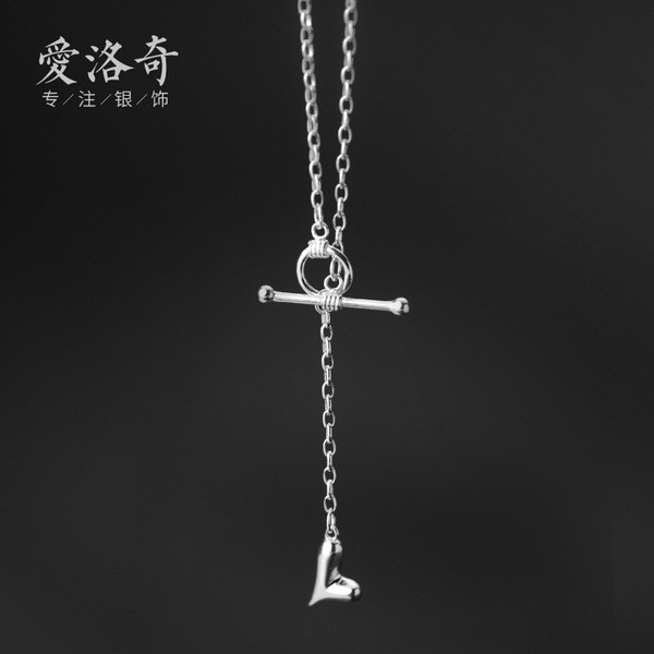 s925 sterling silver chic simple trendy rhinestone heart sweet necklace