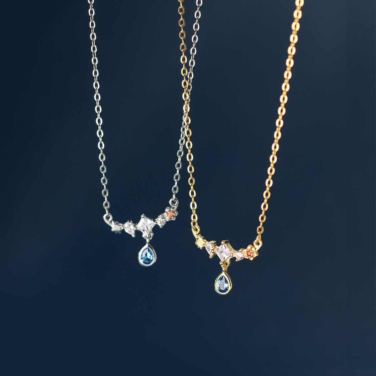 s925 sterling silver rhinestoneO stars fashion silver necklace