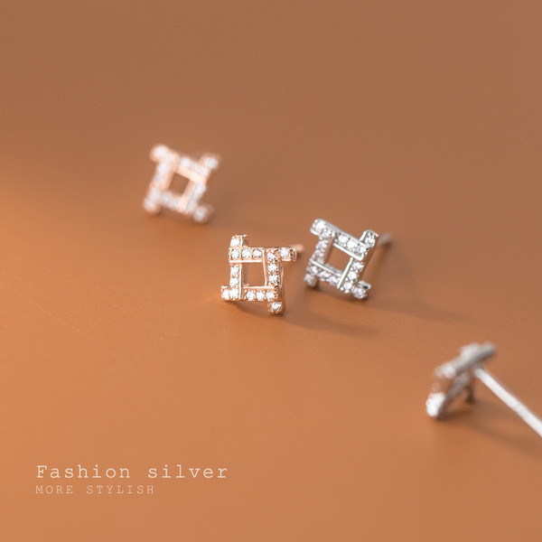 s925 sterling silver trendy simple rhinestone silver opal chic earrings