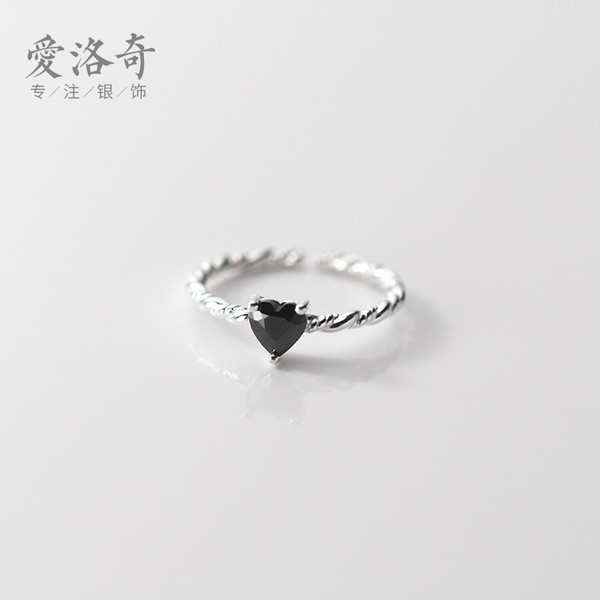 s925 sterling silver black agate imitation unique adjustable silver ring