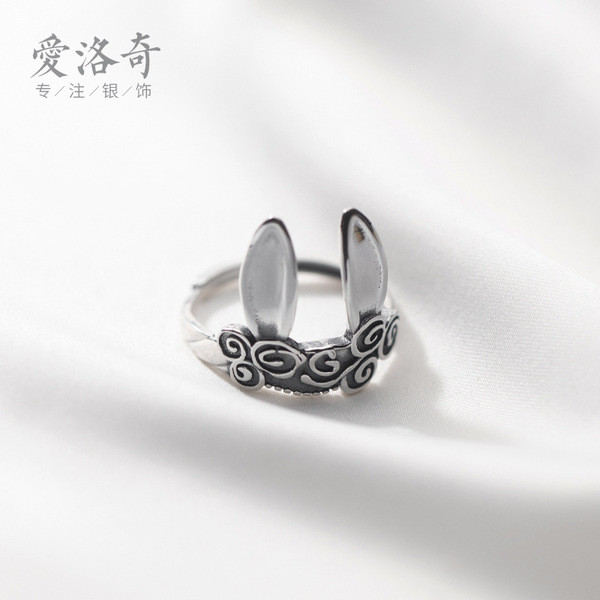 s925 sterling silver adjustable chic rhombic silver vintage big ring