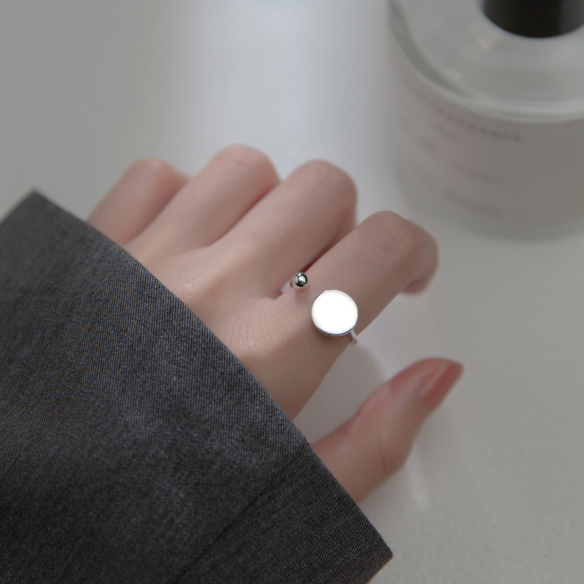 s925 sterling silver black agate imitation unique adjustable silver ring