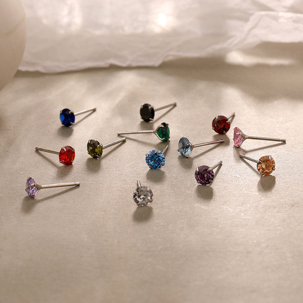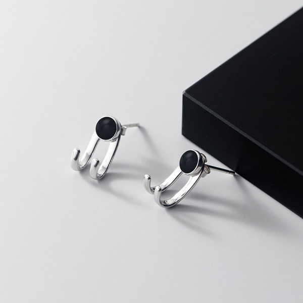 s925 sterling silver simple rhinestone circle short black chic earrings