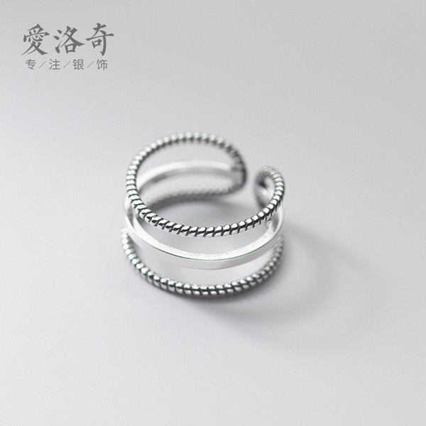 s925 sterling silver fashion vintage silver oval hollowed ring