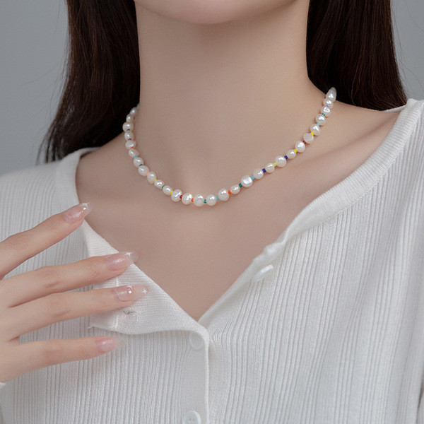 natural freshwaterpearl beadeds925 sterling silver necklace