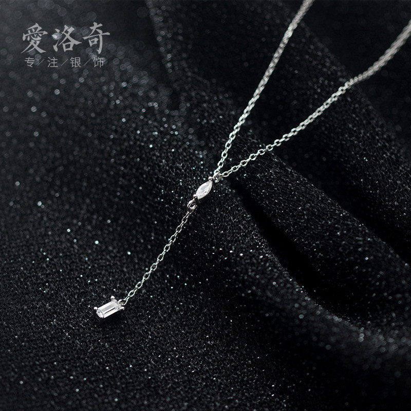 s925 sterling silver white square rhinestone teardrop rhinestone necklace