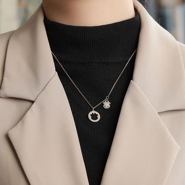 s925 sterling silver doublelayer hollowed necklace