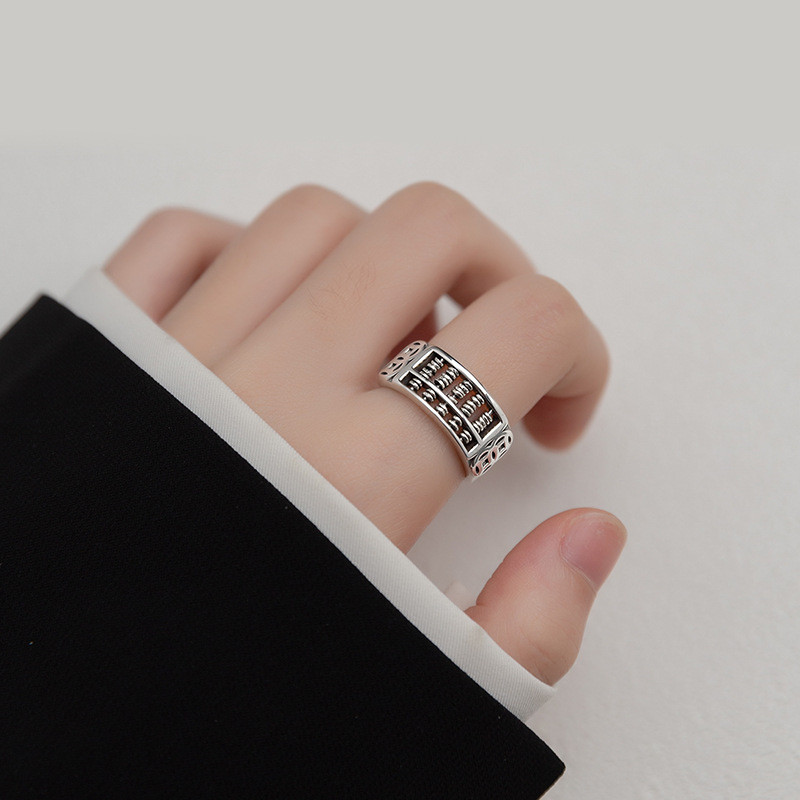 s925 sterling silver smilingface chic silver adjustable trendy doublelayer ring
