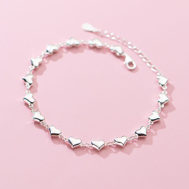 s925 sterling silver silver vintage doublelayer heart charm bracelet