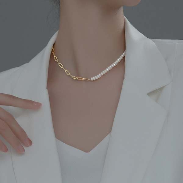 s925 sterling silver square pearl necklace