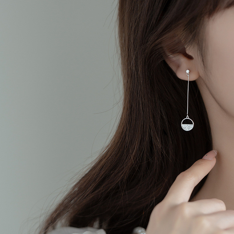 s925 sterling silver simple colorful crystal circle dangleearrings