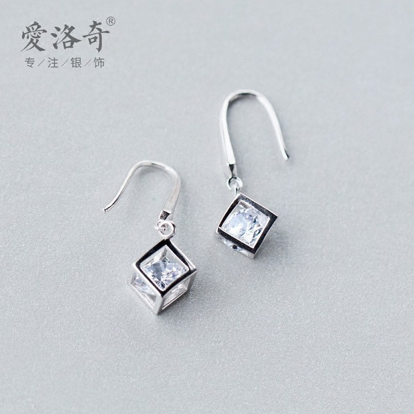 s925 sterling silver square rhinestone simple cute geometric earrings