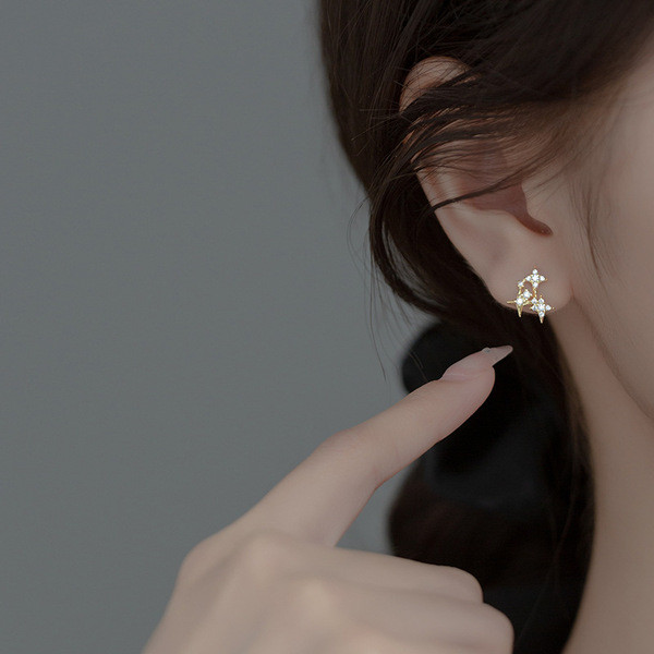 s925 sterling silver simple rhinestone chic fashion rhinestone earrings