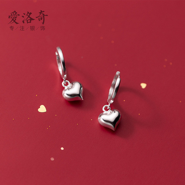 s925 sterling silver sweet simple red heart cute earrings
