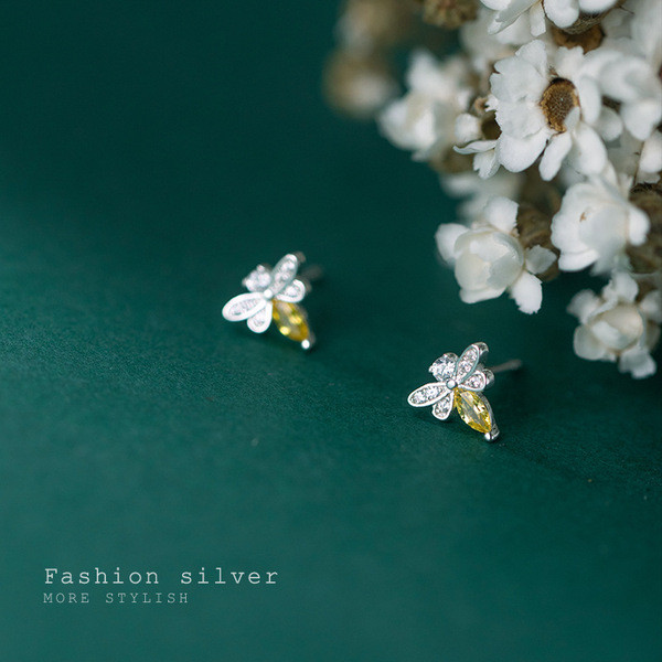 s925 sterling silver unique chic rhinestone trendy initia earrings