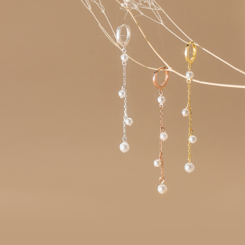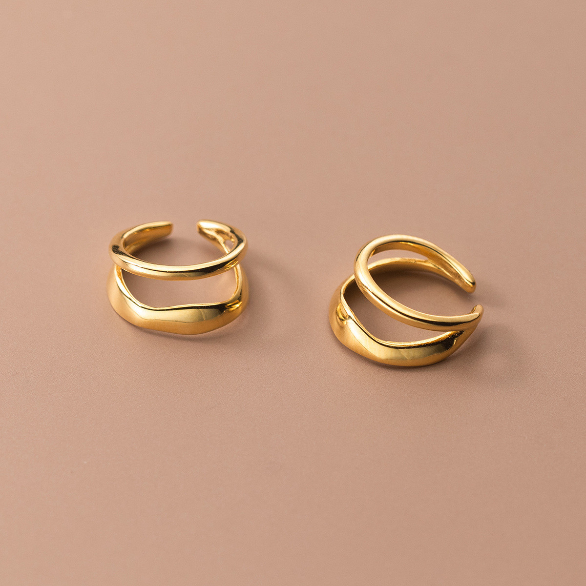 s925 sterling silver doublelayer hollowed chain clipon simple chain earrings
