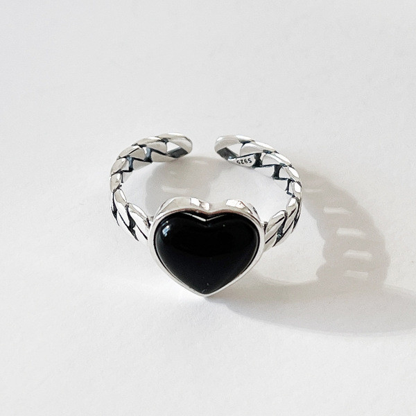 s925 sterling silver trendy simple hollowed rhinestone heart ring