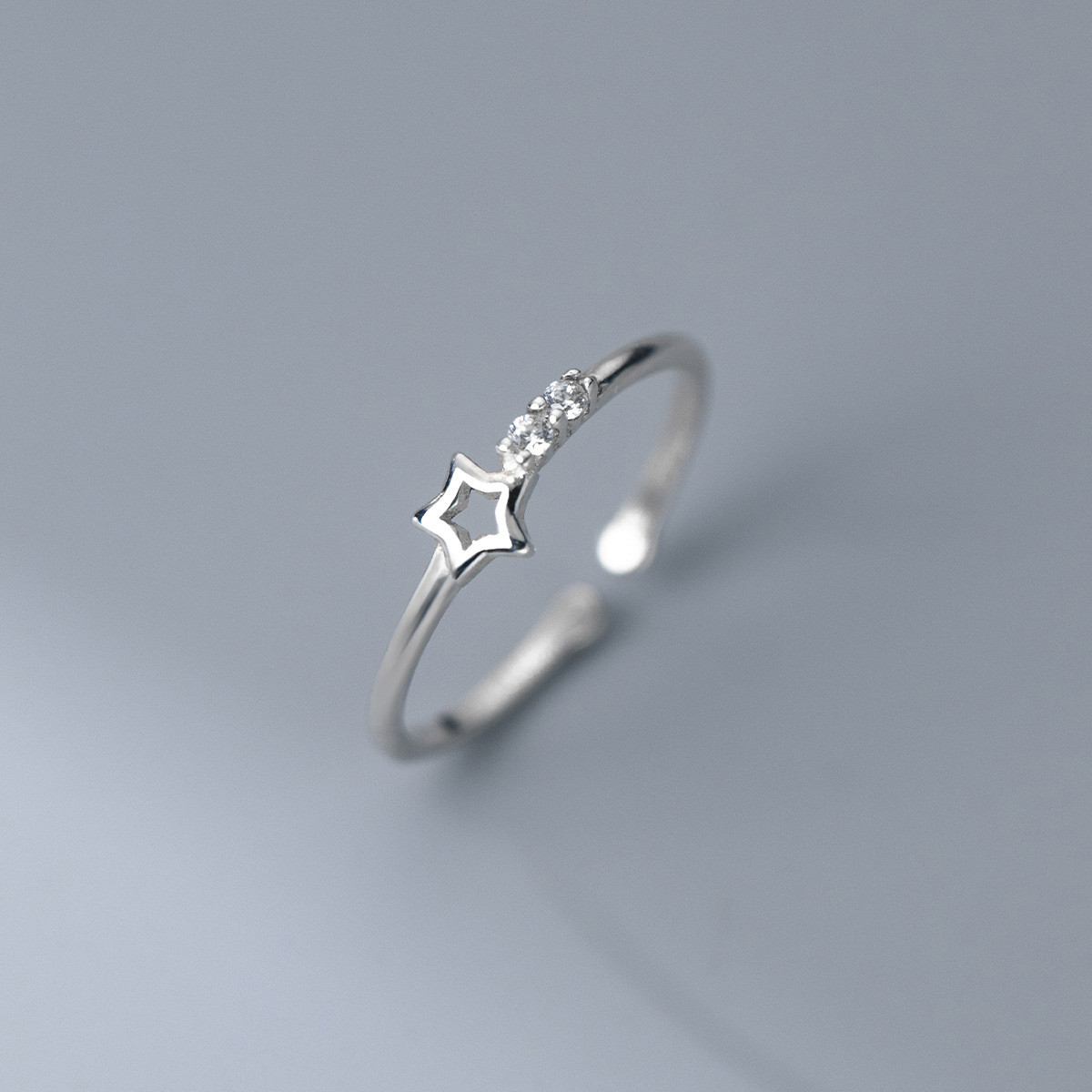 s925 sterling silver simple rhinestone rhinestone adjustable ring