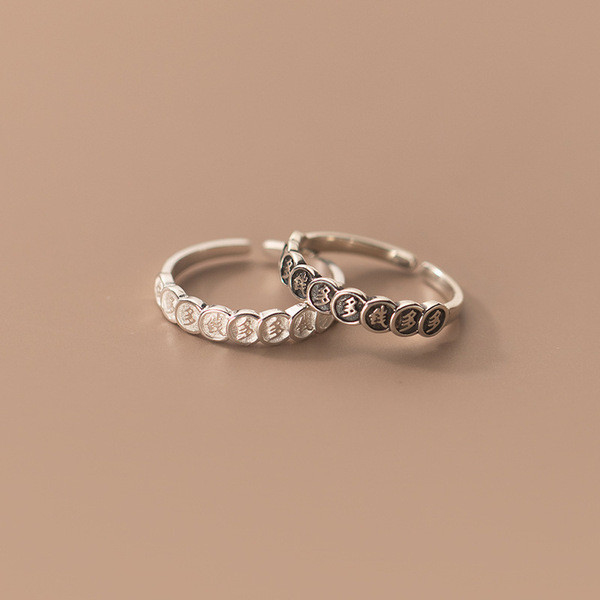 s925 sterling silver simple adjustable black white ring