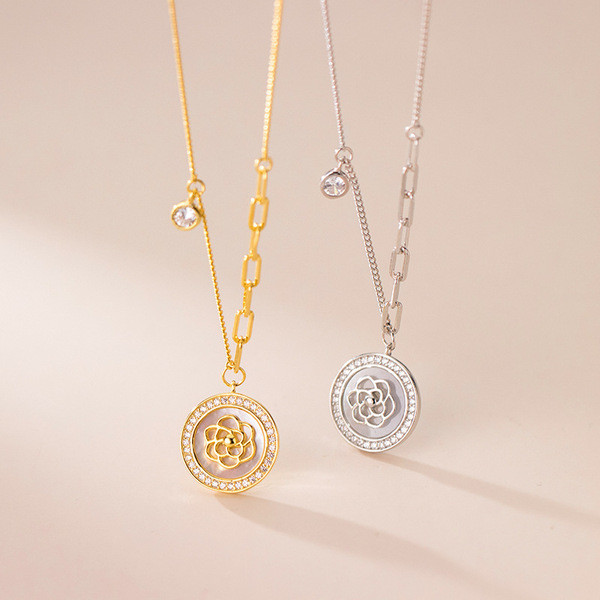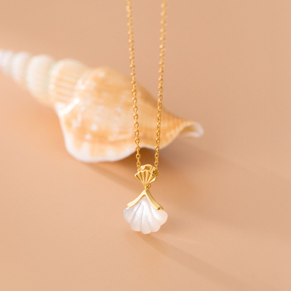 s925 sterling silver chic rhinestone shell fanshape fashion sweet necklace