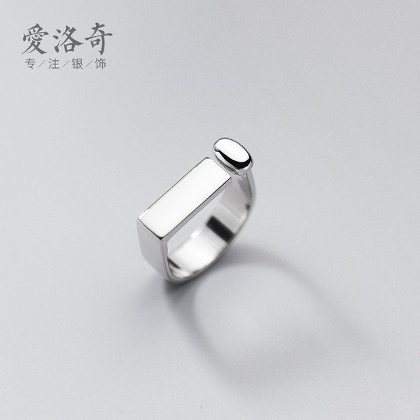 s925 sterling silver adjustable chic rhombic silver vintage big ring