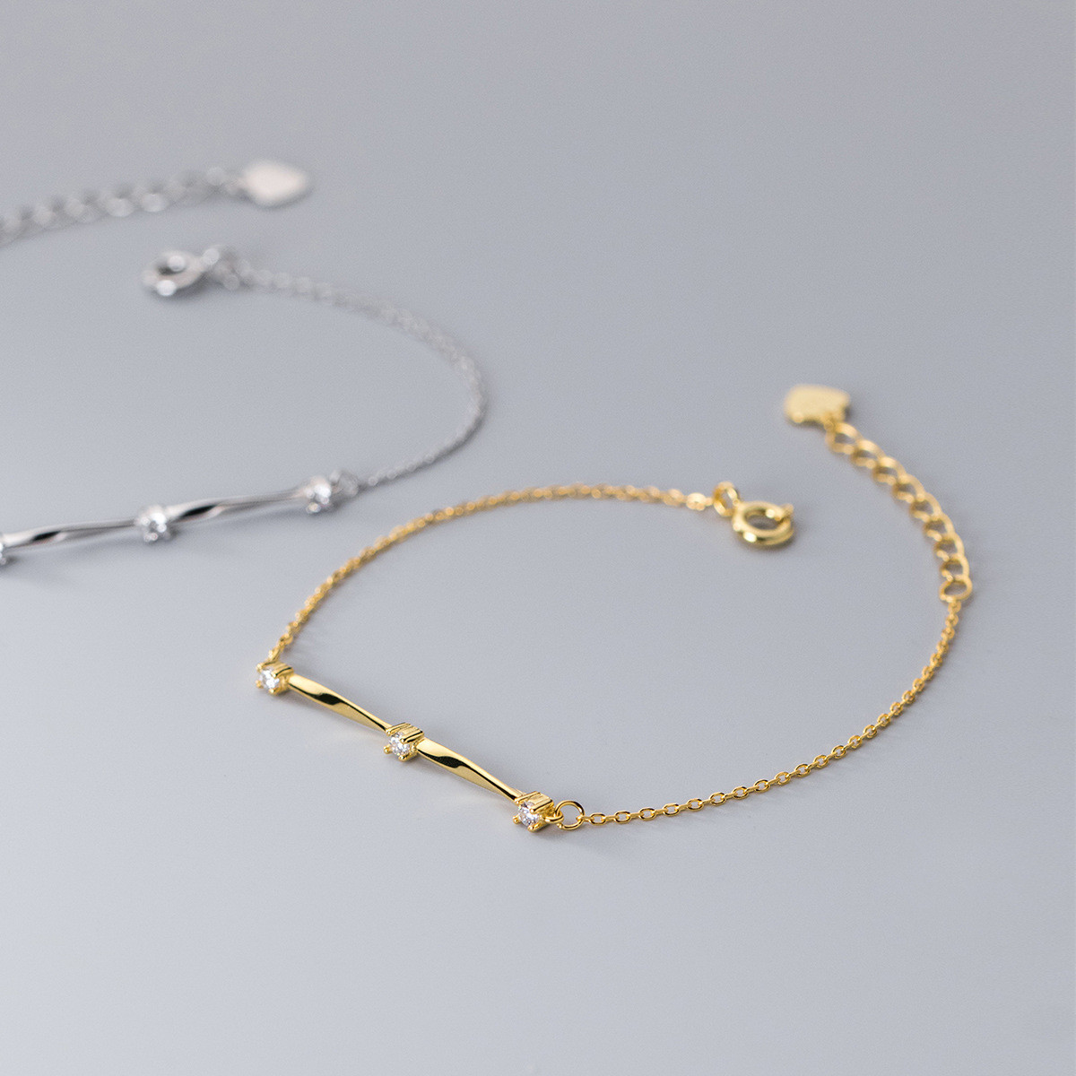 s925 sterling silver geometric charm bracelet