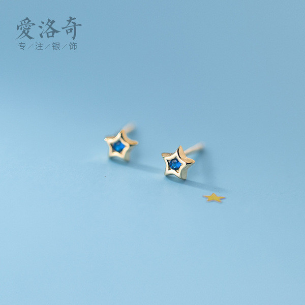 s925 sterling silver simple hollowed star rhinestone sweet earrings