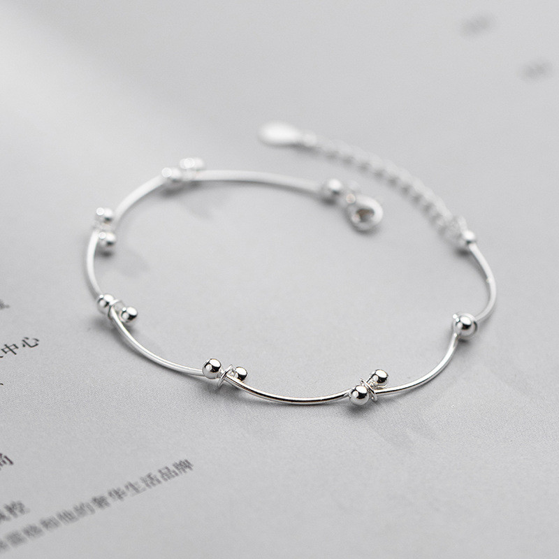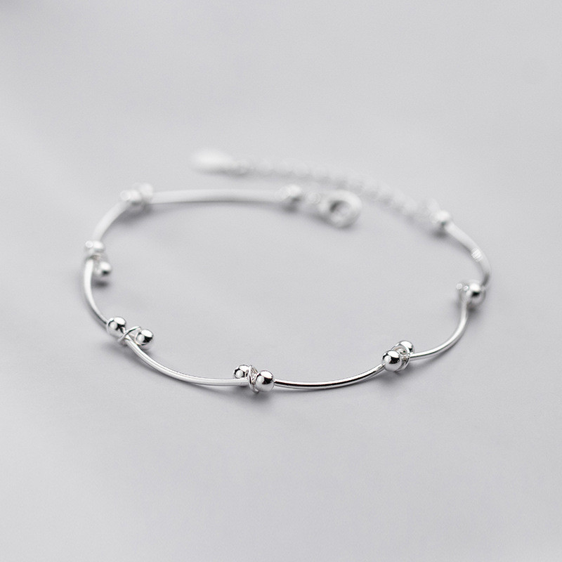 s925 sterling silver simple silver ball charm bracelet