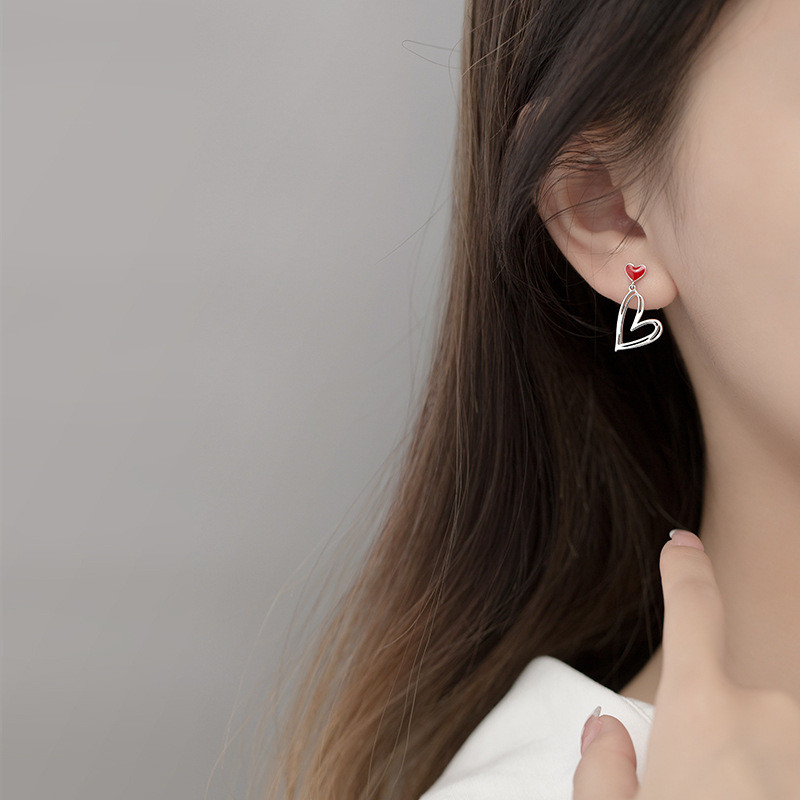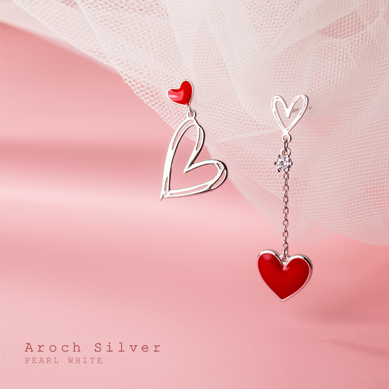 s925 sterling silver unique design asymmetric rhinestone sweet earrings