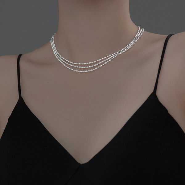s925 sterling silver chic simple trendy pearl sweet necklace