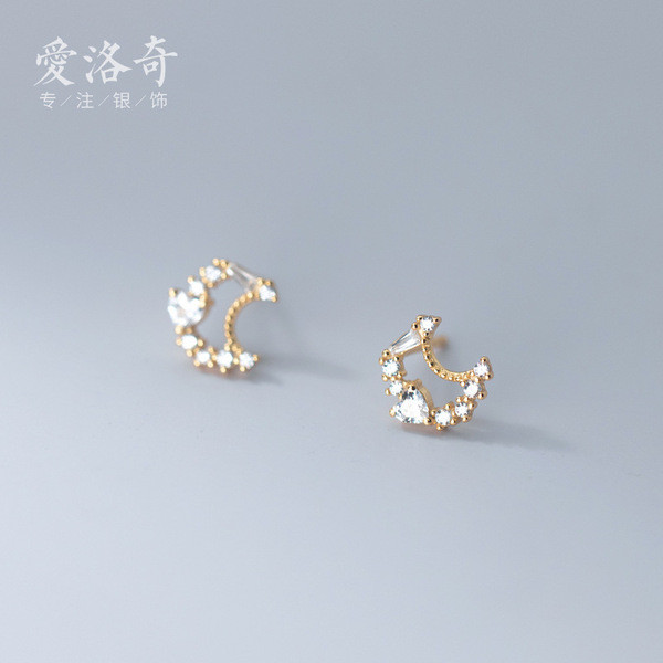s925 sterling silver trendy heart rhinestone chic sweet earrings