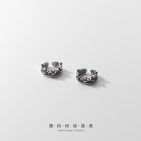 s925 sterling silver hollowed circle clipon fashion chic cute earrings